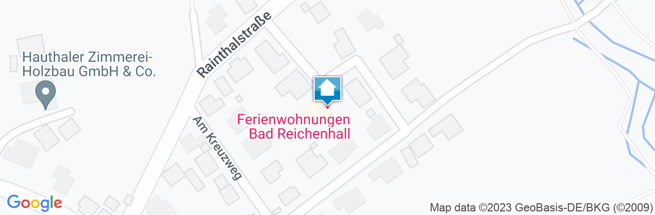 Anfahrt von Autobahnausfahrt A8: Ausfahrt 115-Bad Reichenhall nehmen und Richtung Bad Reichenhall/Berchtesgaden fahren, der B20 2,8 km Richtung Salzburg folgen, die B20 über den Einschleifer verlassen und in die B21 Richtung Salzburg einfahren, der Straße 1,4 km folgen. Rechts abbiegen in die Reichenhaller Straße, Ortsteil Marzoll-Türk: Immer der Vorfahrtsstraße folgen, nach 350 m rechts abbiegen in die Untersbergstraße, nach 600 m links abbiegen in die Rainthalstraße, nach 200 m rechts abbiegen in die Moosbachstraße. Unser Haus befindet sich nach 100 m auf der rechten Seite in der Kurve.
