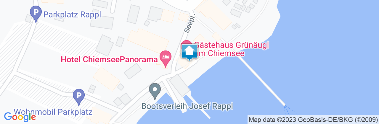 Unser Haus liegt ruhig, direkt am Ufer, mit herrlichem Blick über den See, auf die Fraueninsel und auf die Berge. Viele Gäste sagen, der schönste Platz rund um den Chiemsee. Vor dem Haus unser Yachthafen, mit Segel-, Ruder- und Elektrobooten zum Verleih. Direkter Seezugang, ca. 60 m. zur Anlegestelle der Chiemseeschifffahrt auf die Frauen-und Herreninsel, Liegewiese am See mit Badeleiter und Liegestühlen. Nichtraucherzimmer, Ferienwohnungen, 1-Zimmer-Apartement stehen Ihnen zur Verfügung.