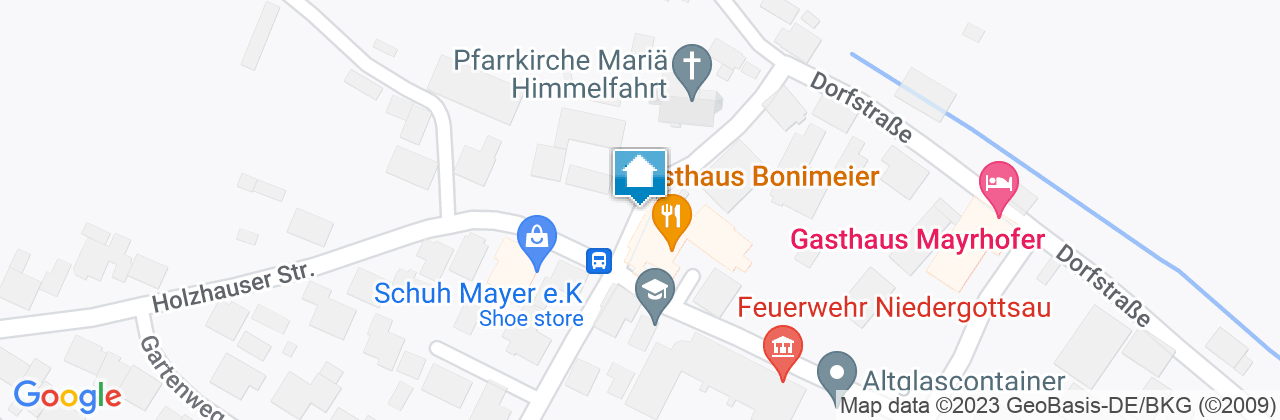 A 94 / B 12 bis Ausfahrt Marktl/Burghausen, vor Ort Marktl rechts abbiegen Richtung Haiming, nach 3 km links nach Niedergottsau abbiegen und bis zur Ortsmitte fahren.