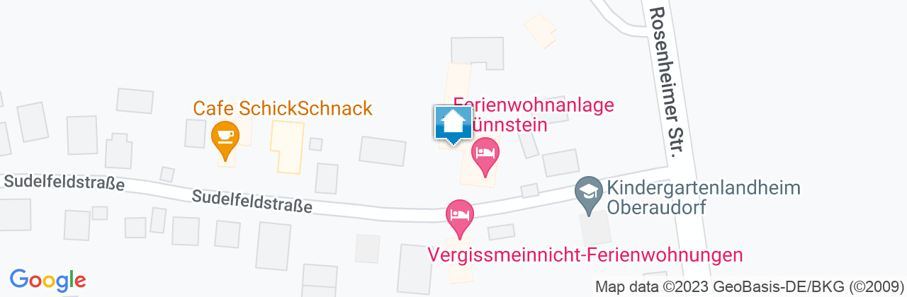 Autobahnausfahrt Oberaudorf. Links ca. 300 m, dann rechts Richtung Brannenburg. Der Vorfahrtstraße folgen. Nach der Bahnunterführung an Kreuzung rechts der Hauptstraße folgen. Nach Ortsausgang Oberaudorf ca. 400 m rechts in die Sudelfeldstraße. Die Ferienwohnanlage Brünnstein finden Sie nach ca. 200 m rechts.