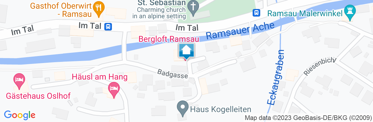 Mit dem Auto: Möglichkeit 1: über die Autobahn A8 München-Salzburg, Ausfahrt 115 Bad Reichenhall, weiter über die B20 Richtung Berchtesgaden und über die B305 Richtung Ramsau, dann bis zur Ortsmitte und nach der Kirche links über eine Brücke in die Badgasse. Möglichkeit 2: über die Autobahn A8 München-Salzburg, Ausfahrt Siegsdorf, weiter über die B305 Inzell - Weißbach - Schneizlreuth, dann Richtung Ramsau. Mit der Bahn: über München Freilassing/Bad Reichenhall zum HBhf Berchtesgaden. Vom Bahnhof Berchtesgaden mit dem Bus Richtung "Ramsau / Hintersee" bis zur Bushaltestelle Mesnerhaus oder Oberwirt. Die Badgasse 3 liegt genau dazwischen, jeweils 5 Gehminuten. Mit dem Flugzeug: Flughafen Salzburg (www.salzburg-airport.com), 35 km entfernt. -;-; Autovermieter am Salzburg Airport. -;-; Taxi-Transfer www.taxi-angerer.de oder www.bus-schwaiger.de Flughafen München (www.munich-airport.de) 180 km entfernt. -;-; Autovermieter am Airport München. -;-; Taxi-Transfer www.taxi-angerer.de oder www.bus-schwaiger.de