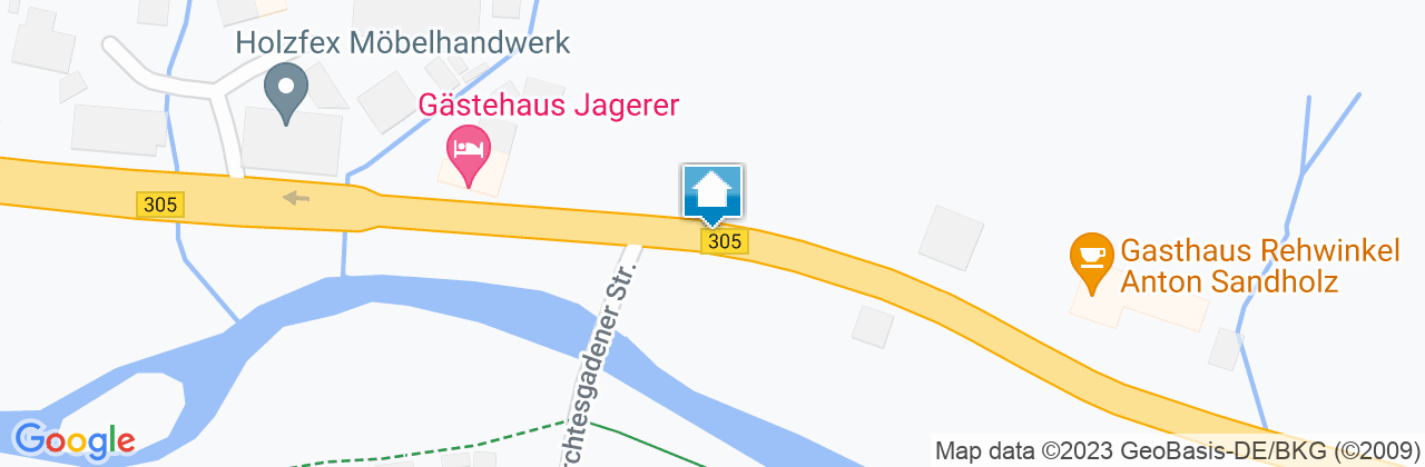 Autobahn A8 München- Salzburg bis Ausfahrt Siegsdorf/Traunstein, weiter auf der B306 Richtung Berchtesgaden, über Inzell, Weißbach bis Unterjettenberg, von dort auf der B305 über Gasthaus Wachterl und Gasthof Hindenburglinde,am Ramsau Zentrum vorbei. Weiter auf der B305 Richtung Berchtesgaden bis kurzvor demOT Wimbachbrücke.Der Gasthof befindet sich auf der linken Seite.