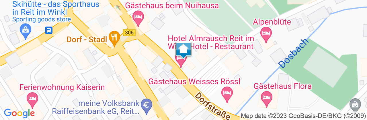 Umgeben von der herrlichen Kulisse der oberbayerischen Alpen finden Sie im Ortskern von Reit im Winkl eine familiär geführte Gastfreundschaft im Hotel Almrausch. Ihnen stehen Doppel-und Familienzimmer inklusive Frühstück zur Verfügung. Unser Hotel stellt einen idealen Ausgangspunkt für einen erholsamen und doch aktiven Urlaub dar. In dem, unter zwei Linden gelegenen Freisitz und in unserem Restaurant servieren wir unseren Gästen eine abwechslungsreiche Küche mit regionalen Gerichten, sowie Speisen aus aller Welt. Danach lässt sich der Abend in unserer gemütlich rustikalen Hüttenbar ausklingen. Wir freuen uns auf Sie.