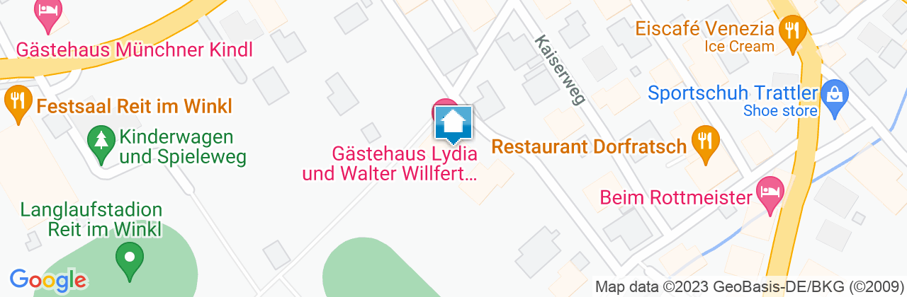 La nostra pensione Willfert, a conduzione familiare, si trova nelle immediate vicinanze del villaggio, ma in una posizione soleggiata e assolutamente tranquilla, con vista libera sulle montagne del Kaisergebirge. Vi offriamo monolocali e bilocali arredati con cura e comfort, con cucine completamente attrezzate. Tutti gli appartamenti sono dotati di doccia/WC e TV a schermo piatto. Sui grandi balconi con mobili in legno si può godere della vista libera sul paesaggio montano circostante. Asciugamani e biancheria da letto sono disponibili in quantità sufficiente. La connessione Wi-Fi e le telefonate verso la rete fissa tedesca sono gratuite. Direttamente presso la casa si trova un ampio prato per prendere il sole. Sole puro dalle prime ore del mattino fino al tramonto. I più sportivi tra i nostri ospiti possono partire direttamente dalla casa per la pista da sci di fondo o per i sentieri escursionistici che partono dalla casa. Troverete relax e svago nella nostra piccola ma raffinata sala benessere con cabina a infrarossi. Il centro del paese con le sue numerose possibilità di shopping e di svago, la varietà di ristoranti e caffè, nonché le fermate degli autobus per sciatori ed escursionisti sono raggiungibili a piedi in pochi minuti. Il pagamento anticipato del 30% del prezzo totale è dovuto entro 10 giorni dalla prenotazione. Il vostro vantaggio come nostri ospiti: siamo partner/gestori della Reit im Winkl Schwimm-Card. Ciò vi offre la possibilità di usufruire, oltre ai nostri servizi, di ulteriori prestazioni gratuite, come ad esempio l'ingresso gratuito alla piscina all'aperto di Reit im Winkl e alla piscina nel bosco di Kössen.