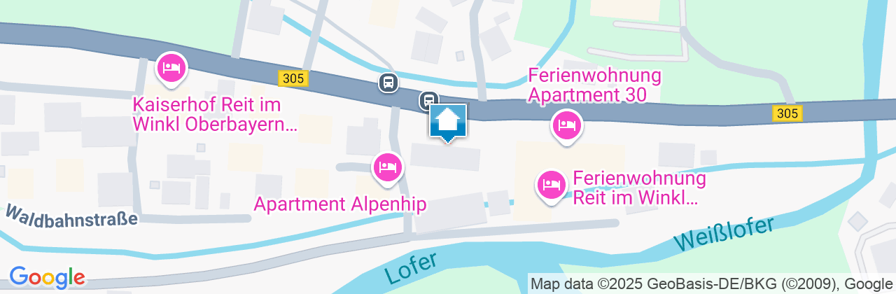 Die Ferienwohnung Koch befindet sich am Ortseingang , von Ruhpolding kommend . Unkompliziert zu erreichen . Sie parken vor dem Haus oder in der Tiefgarage .In der Nähe befinden sich : Supermarkt 200m Bushaltestelle 100m Reit im Winkl Ortskern 2 Km Winkelmoos 6 Km