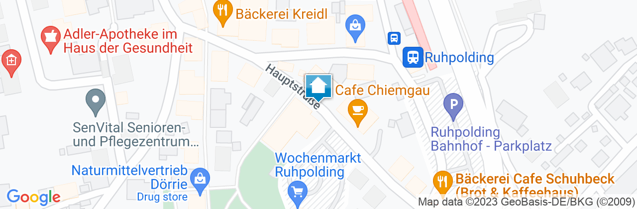 Von der A8 kommend, fahren Sie in Ruhpolding rechts Richtung Orszentrum, unser Haus befindet sich auf der linken Seite - gegenüber von der Volksbank/Tourist-Information.
