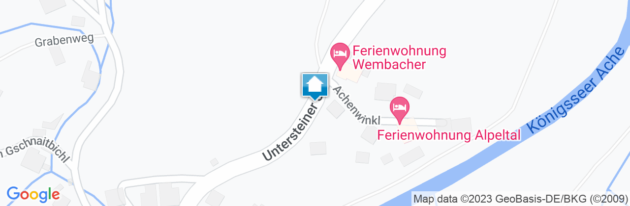 Sie fahren von der A8 München-Richtung Salzburg. Nehmen Sie die Ausfahrt Bad Reichenhall. Das ist die letzte Ausfahrt vor der österreichischen Grenze. (Bei Weiterfahrt VIGNETTENPFLICHT!) Von Bad Reichenhall auf der B20 den Schildern Richtung Berchtesgaden folgen.Sie durchfahren dabei die Ortschaften Bad Reichenhall, Bayerisch Gmain, Hallthurm und Bischofswiesen und kommen schließlich zum großen Kreisverkehr am Bahnhof Berchtesgaden.Von dort die Ausfahrt Richtung Königssee auf die B20 nehmen, am Ortsausgang nach rechts unten in die Untersteinerstraße abbiegen. Sie sind jetzt im Gemeindegebiet Schönau am Königssee. Fahren Sie noch ca. 200 m. Das Haus befindet sich links.