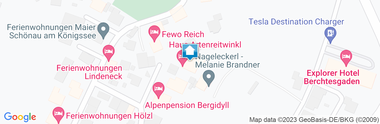 Sie fahren von der A8 München-Richtung Salzburg. Nehmen Sie die Ausfahrt Bad Reichenhall. Das ist die letzte Ausfahrt vor der österreichischen Grenze. (Bei Weiterfahrt VIGNETTENPFLICHT!) Von Bad Reichenhall auf der B20 den Schildern Richtung Berchtesgaden folgen.Sie durchfahren dabei die Ortschaften Bad Reichenhall, Bayerisch Gmain, Hallthurm und Bischofswiesen und kommen schließlich zum großen Kreisverkehr am Bahnhof Berchtesgaden.Von dort die Ausfahrt Richtung Königssee nehmen, am Ortsausgang nach rechts unten in die Untersteinerstraße abbiegen. Folgen Sie der Untersteinerstraße und druchqueren Sie den Ortskern von Schönau am Königssee. Nach dem EDEKA-Markt (rechter Hand) biegen Sie nach rechts ab und fahren einen kleinen Berg hinauf in die Waldhauserstraße. Folgen Sie der Waldhauserstraße und biegen Sie nach der Apotheke nach links in den Artenreitring. Folgen Sie dem Artenreitring und biegen Sie rechts in den Artenreitweg ab. Bei der nächsten Möglichkeit biegen Sie links in die Anton-Adner-Straße. Am Ende der Straße halten Sie sich links und Sie erreichen den Bienenweg.