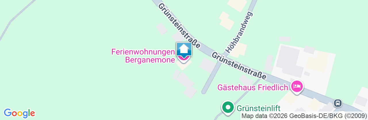 Über die Autobahn A8 bis Ausfahrt Bad Reichenhall, den Hallturmerberg nach Bischofswiesen, Richtung Strub - Berchtesgaden fahren Sie links Richtung Ramsau, beim Autohaus BMW Moderegger rechts abbiegen, von dort nach Oberschönau Richtung Grünsteinskilift, direkt am Fuße des Liftes liegt unser Haus. Haben Sie eine Vignette für die österr. Autobahn, können Sie bis zur ersten Ausfahrt nach Anif-Grödig fahren, von dort aus nach Berchtesgaden. Vom BHF Berchtesgaden über den Friedhofsberg nach Oberschönau, durch die Ortschaft vorbei am Gasthaus Bodner Richtung Grünsteinlift.