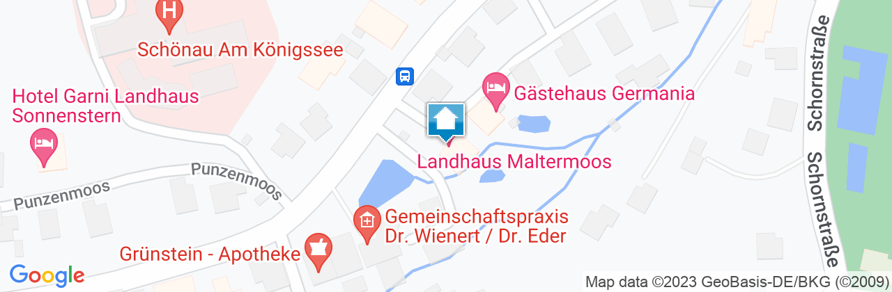 Sur l'autoroute A8 Munich - Salzbourg, sortie Bad Reichenhall (VIGNETTE OBLIGATOIRE !), sur la B20 jusqu'à la gare de Berchtesgaden, à droite direction Königssee, à la fin de Berchtesgaden à droite vers Schönau, environ 200 mètres après l'auberge Unterstein à droite en montant, vous passez devant une pizzeria à droite, tout de suite après à gauche vous voyez le Landhaus Maltermoos, de là nous vous accompagnons jusqu'aux appartements.
